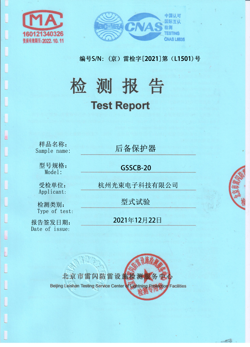 光束后備產品檢測報告T2級100
